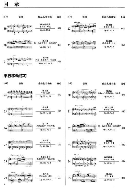 《钢琴上的美妙练习曲100首(原版引进)》中的100首练习曲可以说是每一位钢琴演奏者的必修曲目,由数位钢琴教育家共同合作,经过反复研究精选而成。本曲集涵盖的技术要点全面,练习效果显著,既能提升演奏技巧,又能达到培养音乐表现力的目的,可以有效地进行技术与风格方面的练习,发掘音乐的表达能力。《钢琴上的美妙练习曲100首(原版引进)》含了从巴洛克、浪漫派直到现代派时期作曲家的作品,其中有拜厄、布格缪勒、车尔尼、杜弗诺伊、吉利特、海勒、莱蒙、莱施霍恩、舒曼等作曲家的优秀作品。《钢琴上的美妙练习曲100首(原版引进)》共分为九个部分,系统地讲述了钢琴演奏的各个重要环节:手指跑动、平行移动、多声部中的旋律演奏、装饰音、双音与和弦、同音换指、双手交替、手的跨越、左手练习。所附二维码音频由格哈德·克尔布尔演奏录制,不仅可作为钢琴教学与自学用,更是一本值得珍藏的演奏曲集。